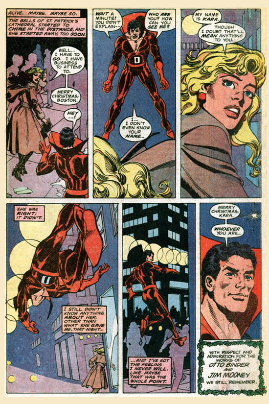 The reference at the end to writer Otto Binder and artist Jim Mooney is a "tip of the hat" to the team who handled most of the Girl of Steel's Silver Age adventures in Action Comics!